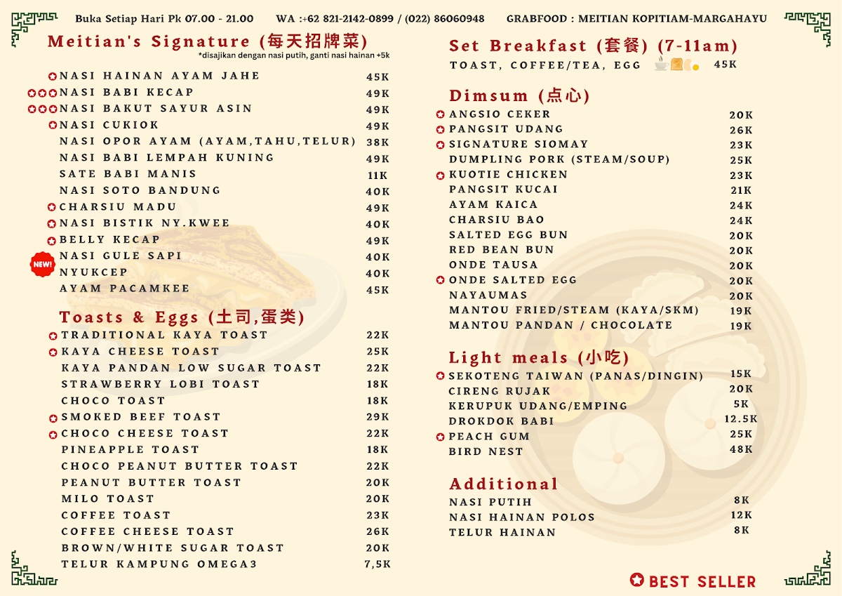 The menu not only satisfies hunger but also tells a story of community and care, as the brand actively supports local employment and education. Whether you're catching up with friends over a drink or savoring a fulfilling meal, Měitiān Kopitiam ensures an inviting, warm atmosphere coupled with dishes that leave a lasting impression.